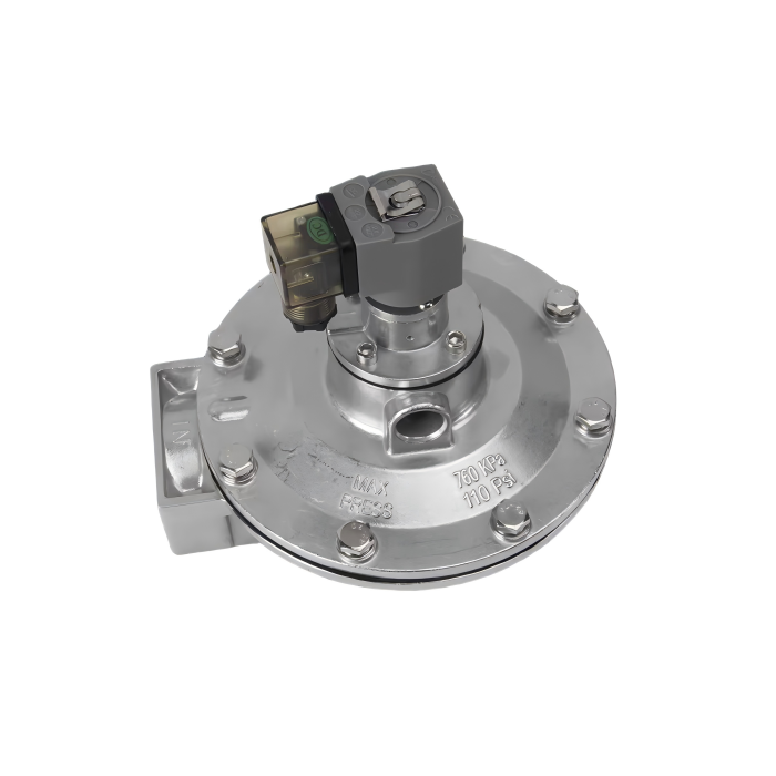 Електромагнетниот импулсен дијафрагмален вентил се состои од две гасни комори. Кога е поврзан компримиран воздух, протокот на воздух влегува во задната гасна комора преку отворот.